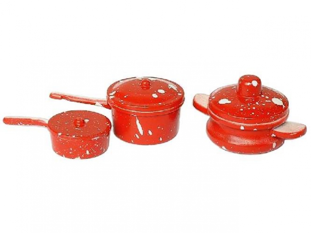 3er Set Kochtöpfe mit Deckel rot, weiß gepunktet - 1