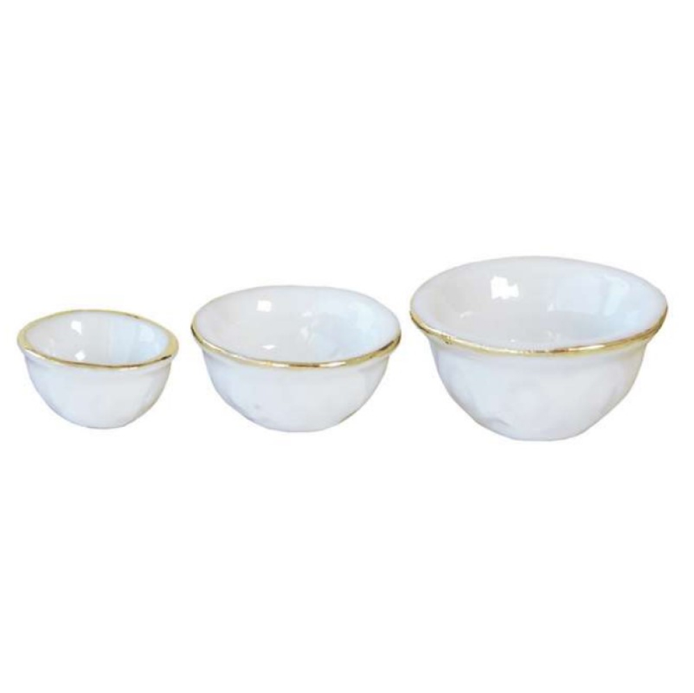 3er Set Pozellanschüsseln weiß mit Goldrand glatt