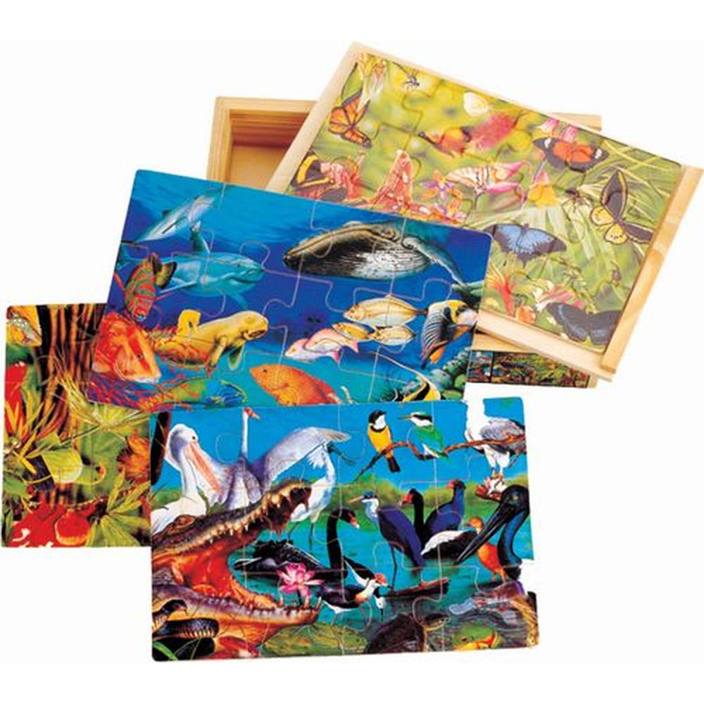 4 Holzpuzzle in Holzbox - Wildtiere - 1