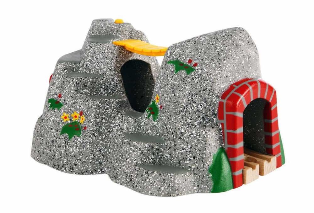 Mit Eisenbahngeräusch, aktivierbar über Magnete und vorbeifahrende Züge, oder durch Knopfdruck.