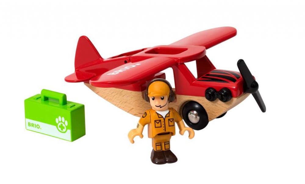 BRIO World Safari-Flugzeug in leuchtendem Rot mit Safari-Muster und drehbarem Propeller. Inklusive Safari-Parkranger-Figur mit Medizintasche für die Behandlung kranker Tiere. Die Flugzeugflügel lassen sich nach oben klappen, so dass der Ranger mit seiner Medizintasche einsteigen kann. Dieses luftige Safari-Abenteuer fördert das kindliche Verständnis der Realität. Passt zu allen Elementen der BRIO World Eisenbahn.