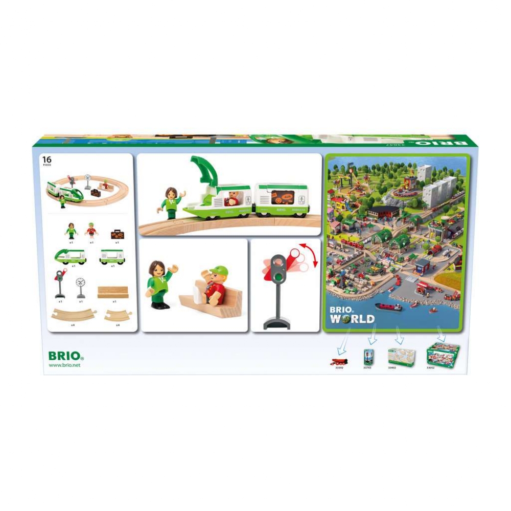 Das klassische Eisenbahnset umfasst Holzschienen, einen Personenzug mit Waggon, zwei Figuren und weiteres Zubehör. Fantastisches Einsteigerset für das BRIO World Eisenbahnsystem. Hergestellt aus FSC-zertifiziertem, europäischem Buchenholz, hochwertigem Kunststoff und Metall. Teil der BRIO World Eisenbahn, die mit deinem Kind wächst und ständig erweitert werden kann. Das realistische Spiel mit der Eisenbahn fördert das Verständnis der Kinder für die Umwelt auf spielerische Weise, während zugleich die feinmotorischen Fähigkeiten geschult werden.