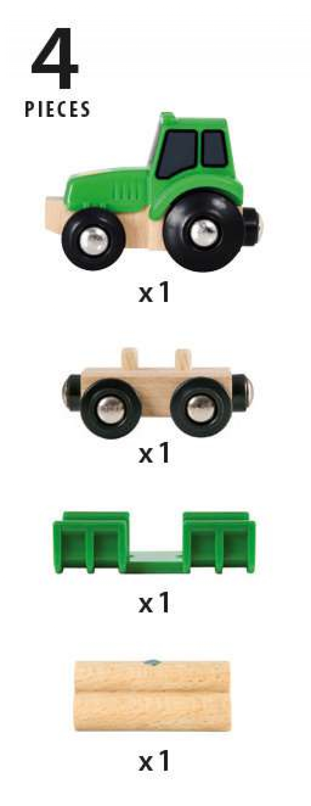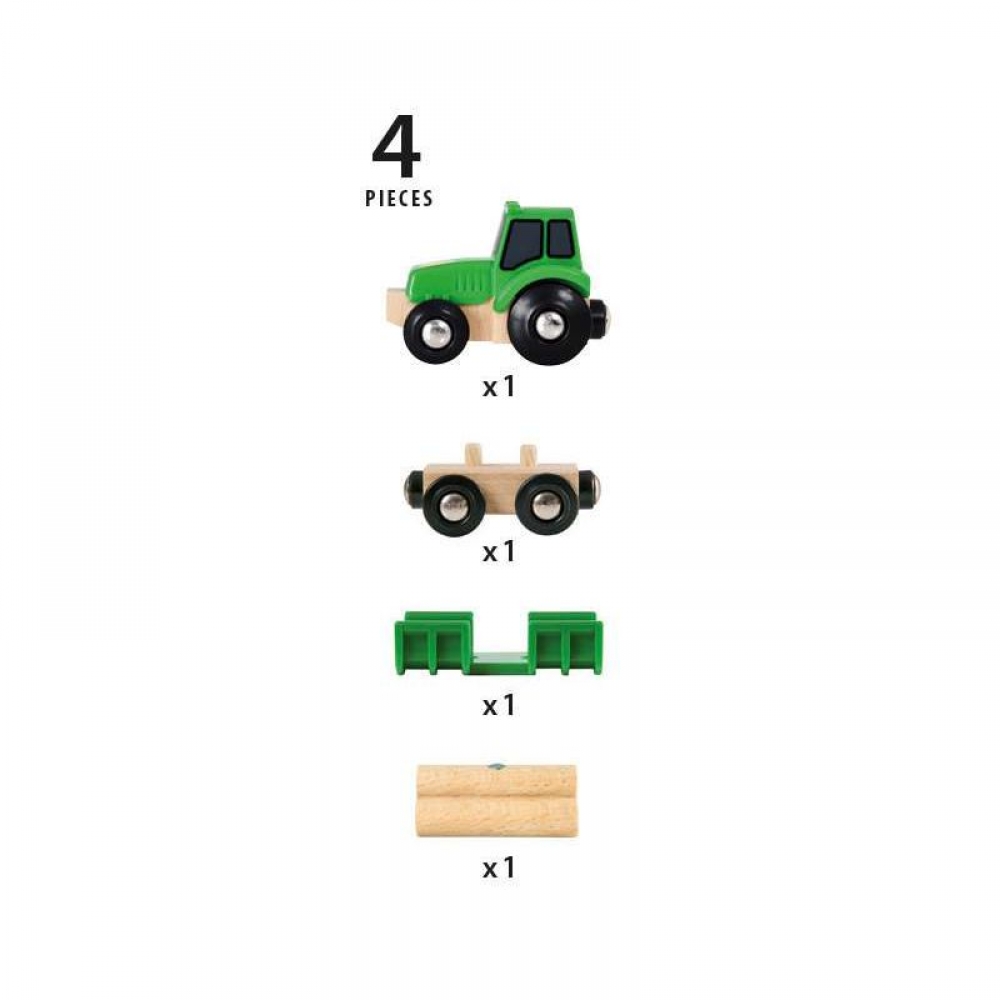 Traktor, das auf die BRIO Waldarbeit-Welt abgestimmt ist. Toller BRIO-Look mit hochwertigen Holzteilen. Die Ladung auf dem Wagen kann mit dem Magnetkran abgeladen werden.