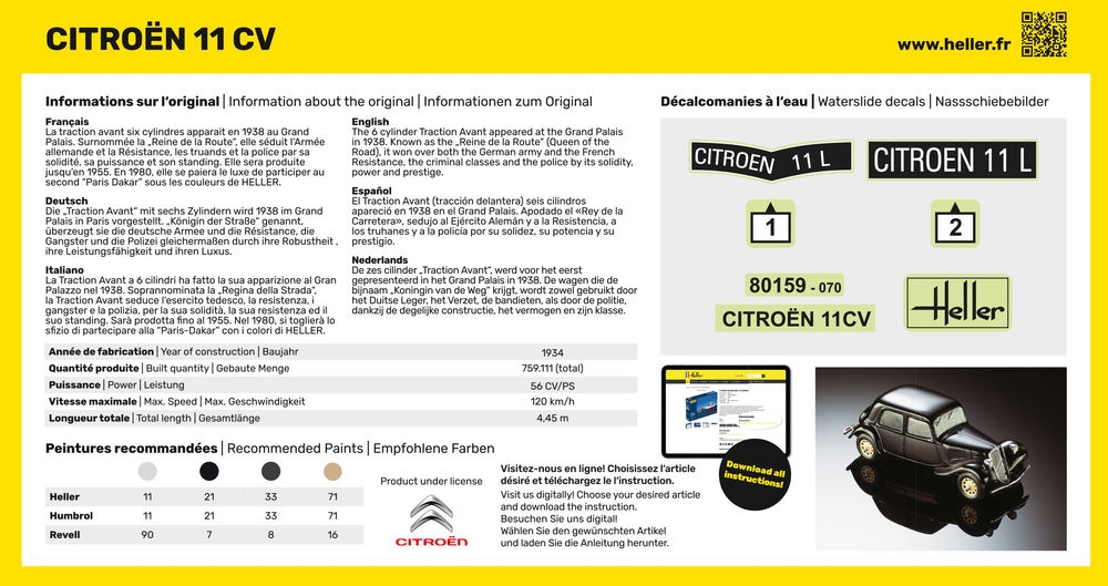 Die „Traction Avant“ mit sechs Zylindern wird 1938 im Grand Palais in Paris vorgestellt. „Königin der Straße“ genannt, überzeugt sie die deutsche Armee und die Résistance, die Gangster und die Polizei gleichermaßen durch ihre Robustheit , ihre Leistungsfähigkeit und ihren Luxus.