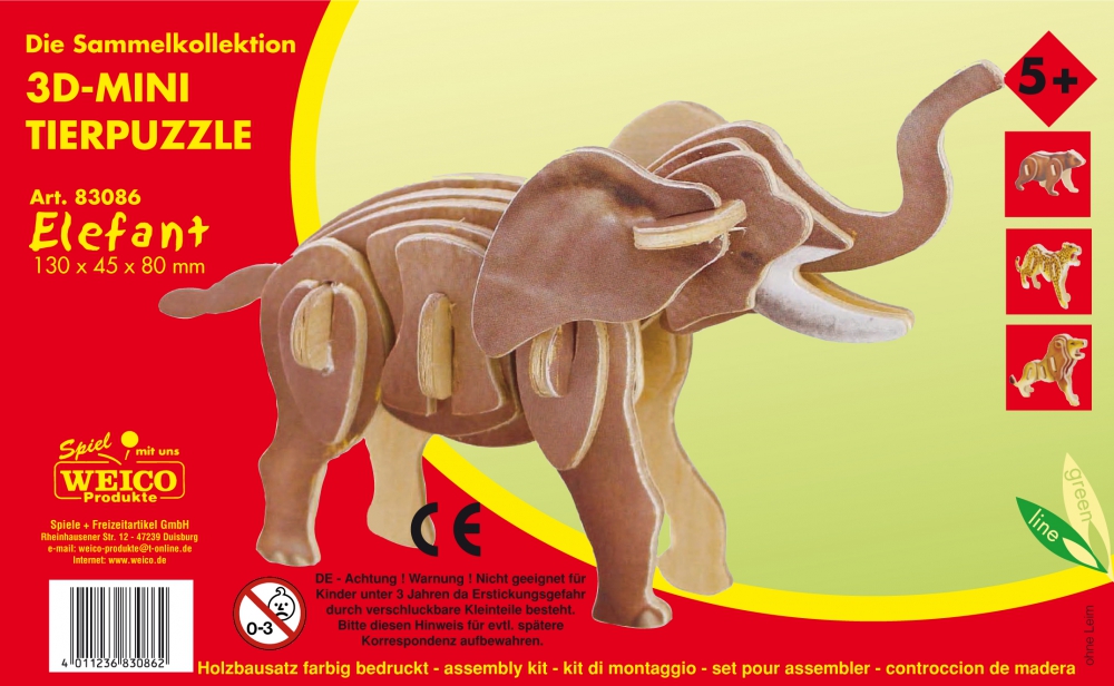Farbiger Mini Holzbausatz Elefant - 3D Puzzle - 1