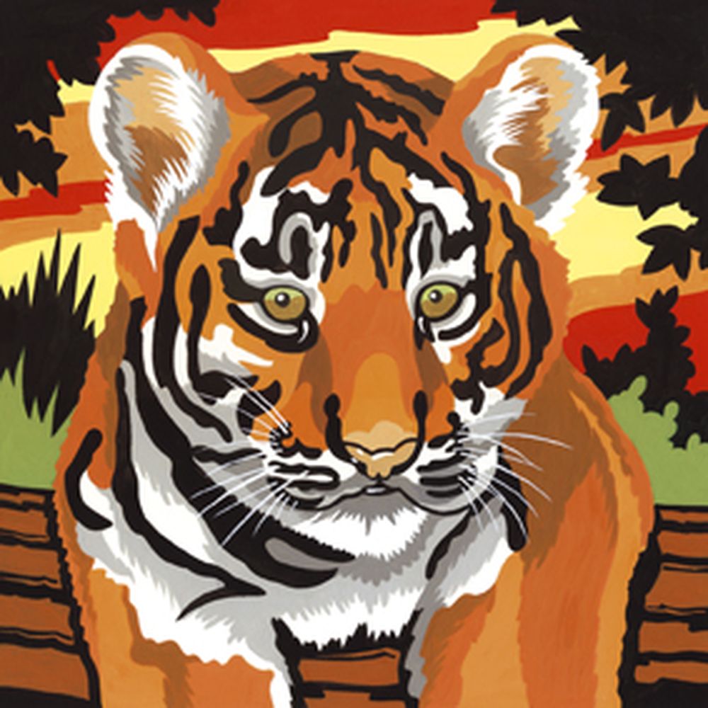 Inhalt: 2 nummerierte Malvorlagen (ca. 24 x 24 cm), 1 Pinsel, 8 Acrylfarben
