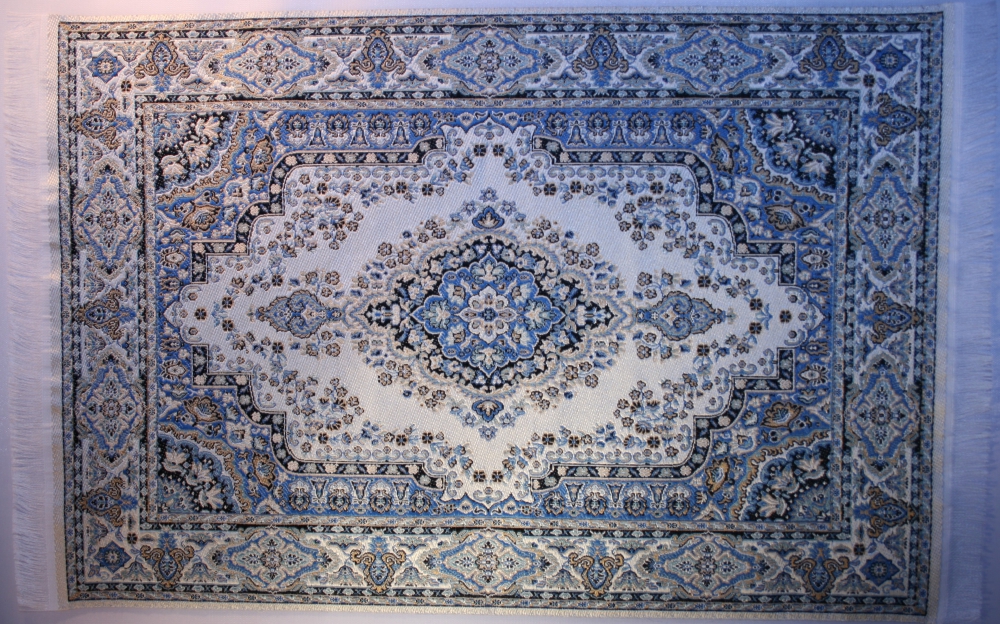 Der Teppich aus Stoff hat die Abmessung von ca. 200 x 300 mm.