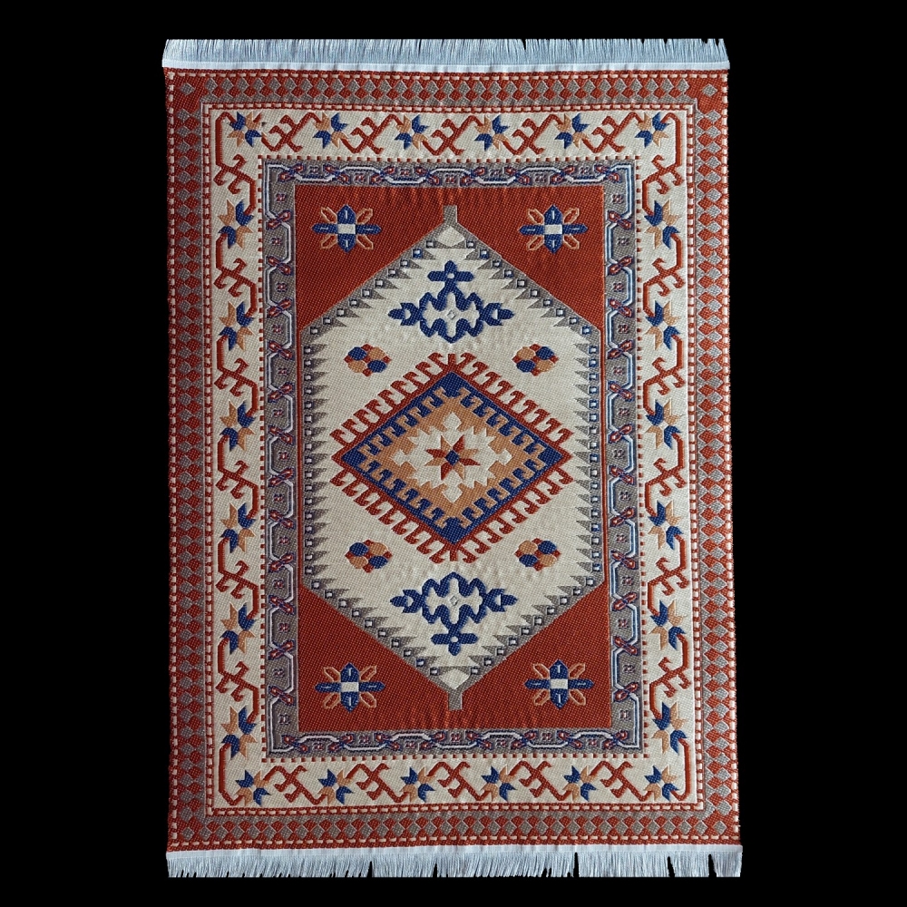 Der Teppich aus Stoff hat die Abmessung von ca. 200 x 300 mm.