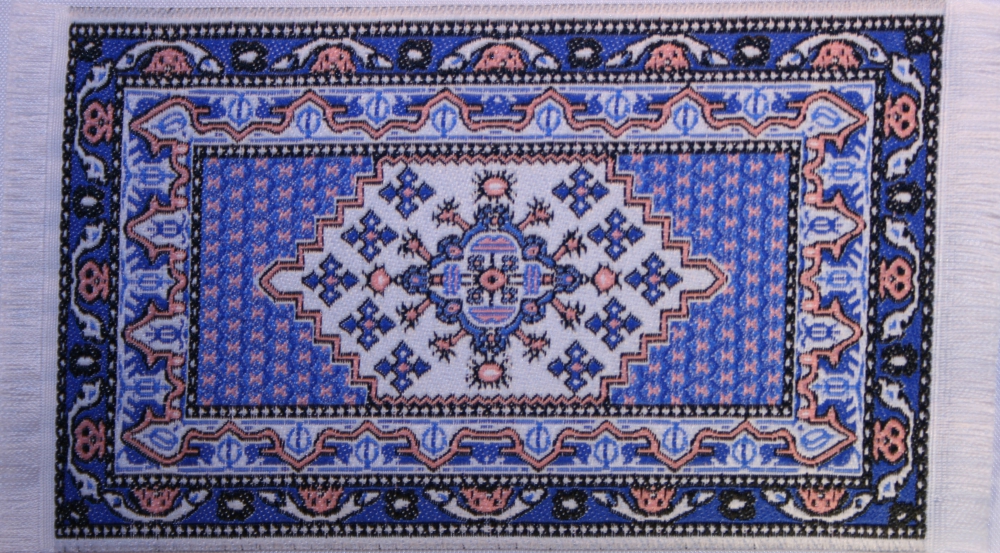 Der Teppich aus Stoff hat die Abmessung von ca. 120 x 65 mm.