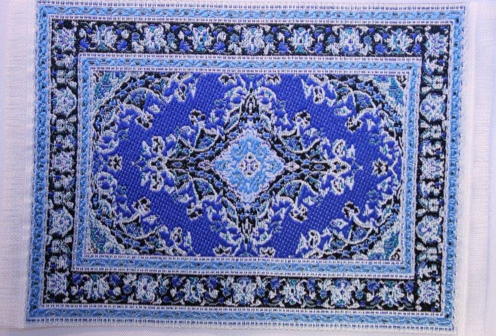 Der Teppich aus Stoff hat die Abmessung von ca. 80 x 120 mm.