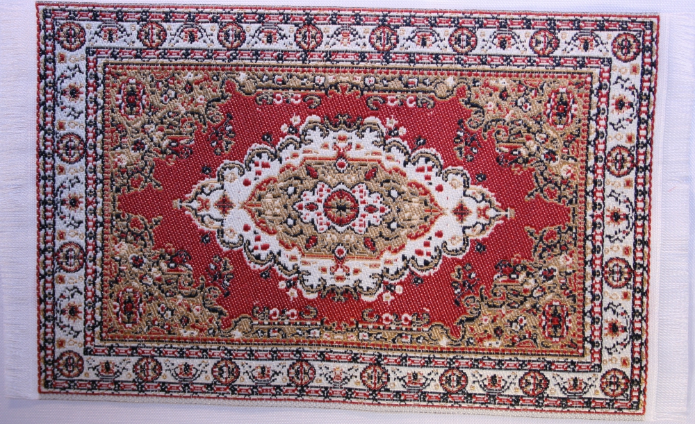 Der Teppich aus Stoff hat die Abmessung von ca. 78 x 128 mm.