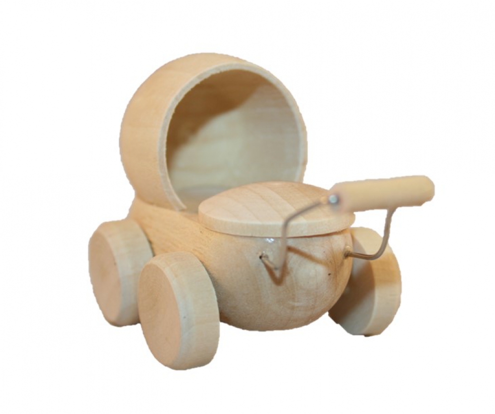 Puppenstube Miniatur - Puppenwagen Holz Natur 4cm