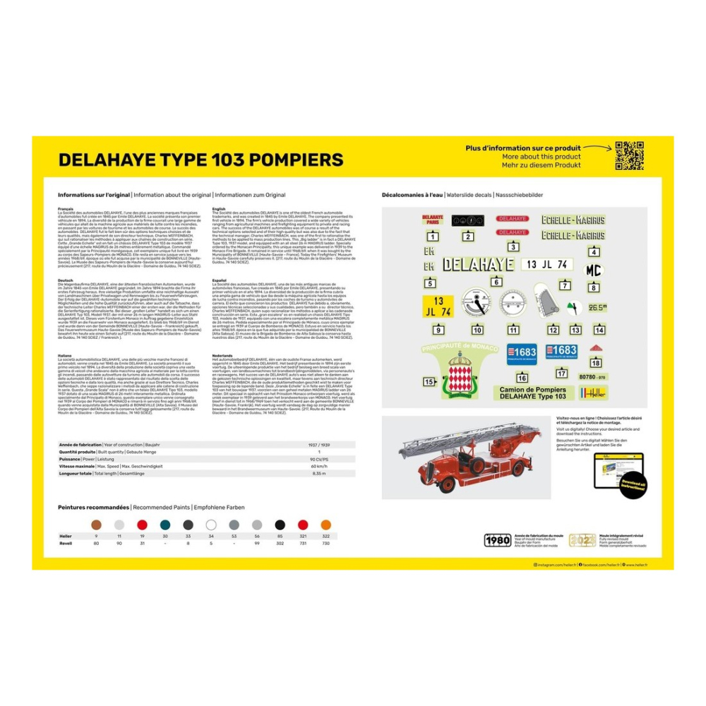 Der Erfolg der DELAHAYE-Automobile war auf die gewählten technischen Möglichkeiten und die hohe Qualität zurückzuführen, aber auch auf die Tatsache, dass der technische Leiter Charles WEFFEINBACH einer der ersten war, der die Methoden für die Serienfertigung rationalisierte. Bei dieser „großen Leiter“ handelt es sich um einen DELAHAYE Typ 103, Modell 1937, der mit einer 26 m langen MAGIRUS-Leiter aus Stahl ausgestattet ist. Dieses vom Fürstentum Monaco in Auftrag gegebene Einzelstück wurde 1939 an die Feuerwehr von Monaco ausgeliefert. Es blieb bis 1968/69 im Dienst und wurde dann von der Gemeinde BONNEVILLE (Haute-Savoie - Frankreich) gekauft. Das Feuerwehrmuseum Haute-Savoie (Musée des Sapeurs-Pompiers de Haute-Savoie) bewahrt ihn heute wie einen Schatz auf (217, route du Moulin de la Glacière - Domaine de Guidou, 74 140 SCIEZ / Frankreich ).