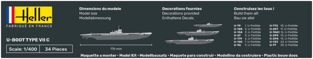 Das deutsche U-BOOT TYPE VII C, war das bei weitem meistgebaute U-Boot. Diese Variante wurde im April 1940 in Dienst gestellt und war das Rückgrat bei der Schlacht im Atlantik. Nur ein Boot existiert noch als Museumsschiff in Laboe (Deutschland). Beim Typ VII handelte es sich um Einhüllen-Hochseeboote, deren Merkmale die außenliegenden Satteltanks waren. Es wurden mehr als 700 Einheiten in Dienst gestellt.