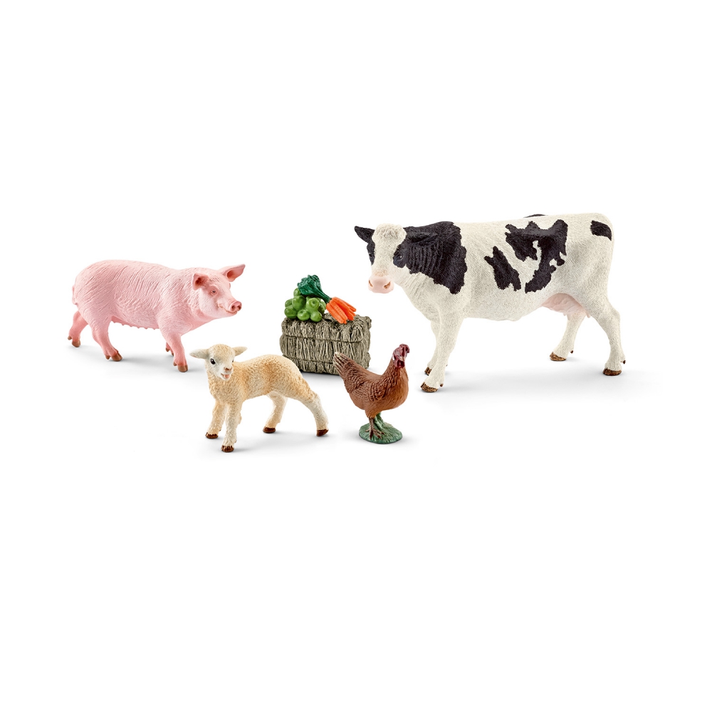 Die ersten Tiere sind auf dem Bauernhof angekommen und haben auch schon ein schönes Plätzchen im Stall gefunden. Damit sie sich gut entwickeln und vermehren, gibt der Bauer ihnen nur bestes Futter. Die Bauernhoftiere erkunden ihr neues Zuhause und beschnuppern neugierig ihre Umgebung. Das Schwein macht einen kleinen Luftsprung, denn mit seinem guten Riecher hat es gleich ein paar Äpfel und Möhren entdeckt. Selig schmatzend verputzt es sie. Mit dem Heu versorgt der Landwirt die schwarzbunte Kuh, die schon hungrig muht. Das süße Lamm darf heute zum ersten Mal auf die Weide. Es ist lustig anzusehen, wie es herumtollt. Die Henne beobachtet vom Hof aus interessiert das Treiben und pickt hier und da nach Körnern. Auf dem Bauernhof hört man die Tiere fröhlich quieken, muhen, blöken und gackern. Abmessung ca. 0 x 0 x 0 mm.