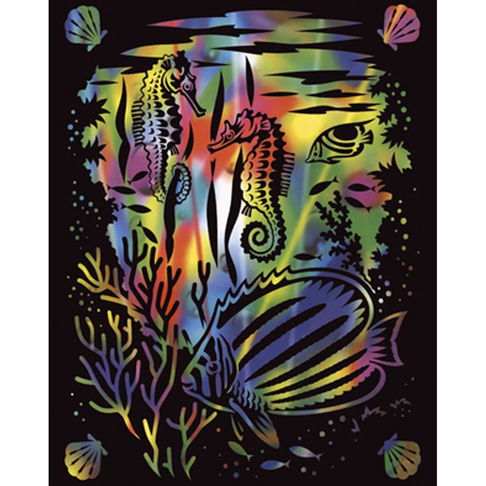 Inhalt: 1 Kratzbild mit Motiv, 1 Kratzbild unbedruckt (je ca. 20 x 25,2 cm), 1 Kratzmesser (Kunststoff)