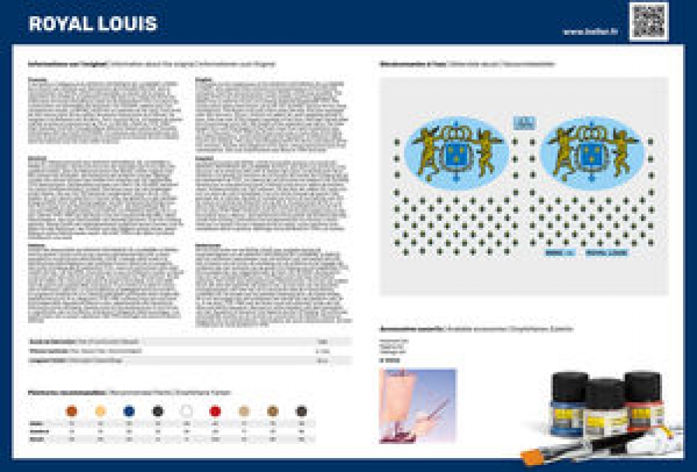 Es ist der Hilfsbereitschaft des SERVICE HISTORIQUE DE LA MARINE in PARIS zu verdanken, die ihre Archive für die Techniker der Firma HELLER geöffnet hatten, dass die Rekonstruktion der ROYAL LOUIS möglich war. Das Design des Rumpfes, die Verteilung der Artillerie und der Takelage wurden aus einem Entwurf des Grafen von Estaing vom 25. September 1772 übernommen. Die Baupläne wurden von Herrn J.B. OLIVIER, berühmt für seine Schiffsarchitektur, erstellt. Die Royal Louis war ein Großsegler erster Klasse. Sie war mit 120 Kanonen ausgerüstet, davon 32 St. vom Kaliber 36, von denen jede fast 5 Tonnen wog. Sie gehörte zu den größten Kriegsschiffen ihrer Zeit. Namensgeber war der französische König Louis XVI. Ihre Länge an der Wasserlinie betrug 68 m, die Gesamtlänge 96 m und die Höhe des Hauptmastes vom Kiel bis zur Plattform betrug 74 m. In den Jahren 1779-1780 war die Royal Louis ein Hauptschiff des Blau-Weiß-Geschwaders, das zum Geschwader von Amerika genannt, Graf von Estaing gehörte. Dieses Schiff war außergewöhnlich aufgrund seiner Formen und vor allem für den Reichtum, der Finesse und der Eleganz seines Hecks, deren Balkone wahre Meisterwerke waren. Sie erlitt 1794 in der Nähe von Brest Schiffbruch und sank.