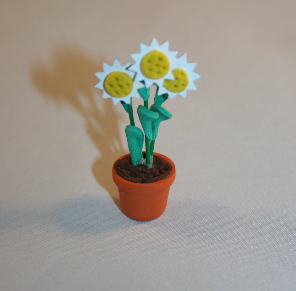 Der Topf ist ca. 12mm hoch, Gesamthöhe der Blume mit Topf ca. 45mm