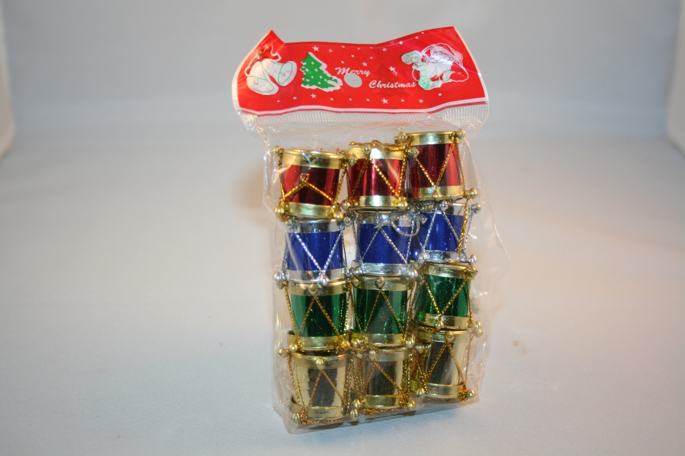 Die kleinen Trommeln haben Aufhänger um als Christbaumschmuck verwendet zu werden.