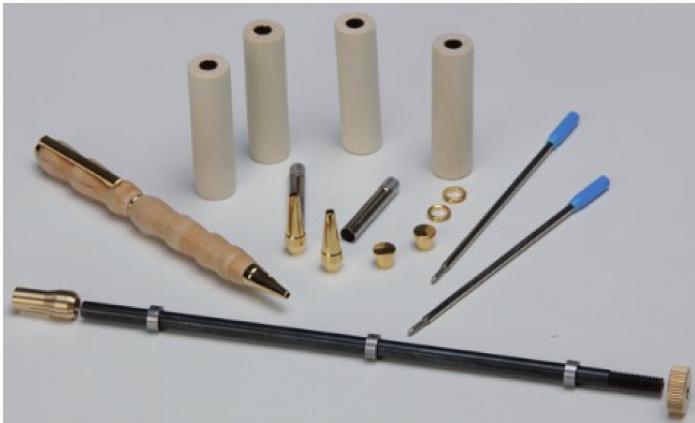 Aufnahmevorrichtung plus Rohlinge und Mechanik für 2 edle selbst gedrechselte Kugelschreiber.